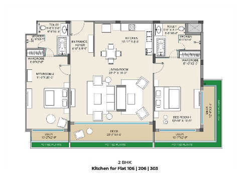 2 BHK Kitchen for Flat 106 | 206 | 303