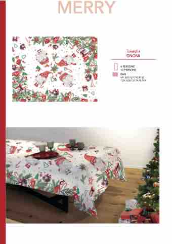 Tovagliada12eda6,dispo- nibile anche nella variante con luccicanti applicazioni dorate; Set guanto+presi- na+strofinaccio; Set 3 stro- finacci; Set 2 presine.
