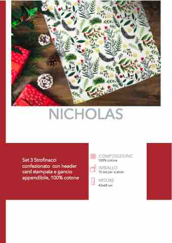 NICHOLAS COMPOSIZIONE 100% cotone IMBALLO 12 set per scatola MISURE 43x68 cm Set 3 Strofinacci confezionato con header card stampata e gancio appendibile, 100% cotone