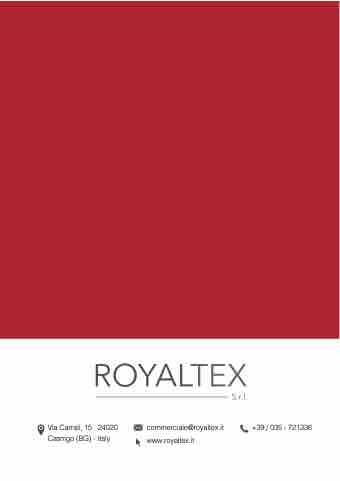 Via Carrali, 15 24020 commerciale@royaltex.it +39 / 035 - 721336 Casnigo (BG) - Italy www.royaltex.it