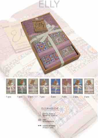 ELLY 1 pcs 1 pcs 2 pcs 1 pcs 2 pcs 1 pcs 2 pcs 2 pcs ELLY MAIOLICHE OSPITE: 36X56 cm SALVIETTA: 53x96 cm EAN 8050506846093 CODICE INTERNO PF500211.0045
