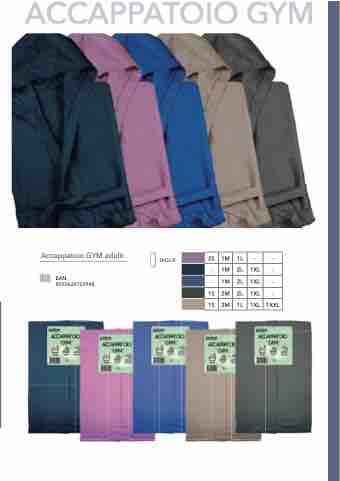 ACCAPPATOIO GYM Accappatoio GYM adulti EAN 8050624752948 TAGLIE 2S 1M 1L - - - 1M 2L 1XL - - 1M 2L 1XL - 1S 2M 2L 1XL - 1S 2M 1L 1XL 1XXL