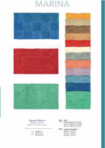 MARINA Tappeto Marina Disegni assortiti: Quadri / Cornice / Onda 50x80 cm 60x110 cm 65x135 cm EAN 50x80: 8054615133198 60x110: 8054615133204 65x135: 8054615133211 CODICE INTERNO 50x80: 1-81310 60x110: 1-81311 65x135: 1-81312