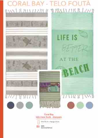 C COR R RA AL B B A AY Y - - - TEL LO O F FOU UTÀ Coral Bay telo mare foutà - stampato 97x175 cm + frange 10 cm EAN 8059340989546
