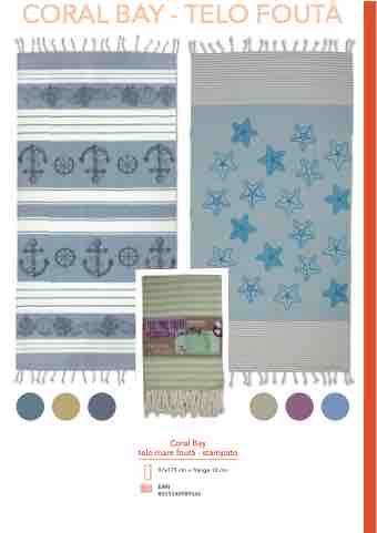 CORAL BAY - TELO FOUTÀ Coral Bay telo mare foutà - stampato 97x175 cm + frange 10 cm EAN 8059340989546