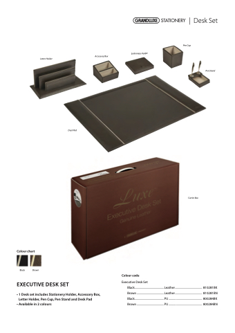 Executive Desk Set Black..........................................Leather....................................... 810281BK Brown .......................................Leather....................................... 810281BN Black..........................................PU ................................................ 800284BK Brown .......................................PU ................................................ 800284BN