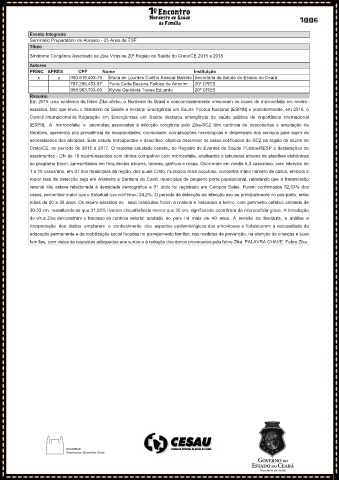 famílias, com vistas às respostas adequadas aos surtos e à redução dos danos provocados pela febre Zika. PALAVRA CHAVE: Febre Zika.
