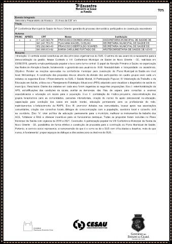 Novo Oriente - CE, possibilitou de forma efetiva a construção de propostas para a construção do Plano Municipal de Saúde.