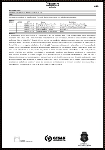Quixadá/CE, com 24 participantes trabalhadores da referida UBS. Para coleta e análise das informações utilizou-se do Discurso do Sujeito