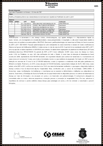 PERFIL EPIDEMIOLÓGICO DA HANSENÍASE NO ESTADO DO CEARÁ NO PERÍODO DE 2007 A 2017