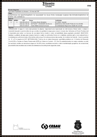 construído baseado na problemática de que a análise da qualidade da água para consumo humano das Instituições de Ensino Fundamental