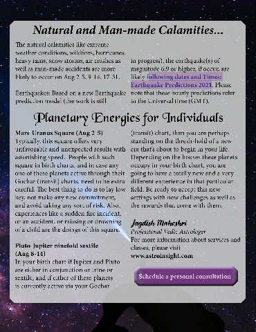 for August include: Aug 23-31: A slowdown in religious and Earthquake Predictions 2021. Please