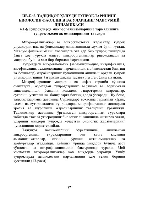 ИВ-Боб. ТАДҚИҚОТ ҲУДУДИ ТУПРОҚЛАРИНИНГ