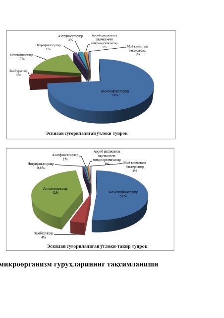 13-расм. Сурхондарё воҳаси тупроқларида микроорганизм гуруҳларининг тақсимланиши 88