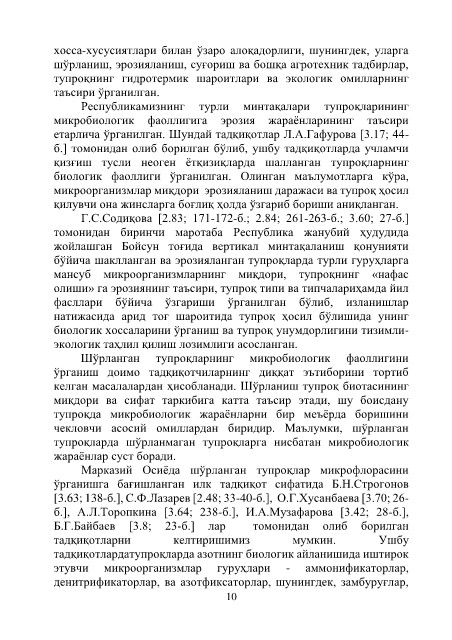 келган масалалардан ҳисобланади. Шўрланиш тупроқ биотасининг