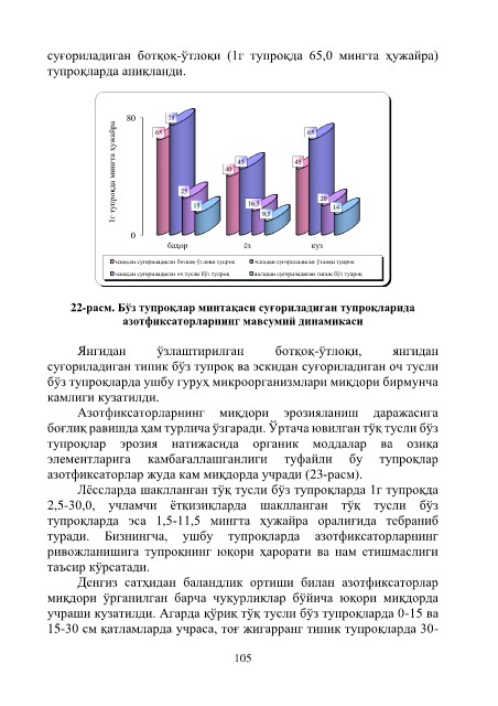 22-расм. Бўз тупроқлар минтақаси суғориладиган тупроқларида