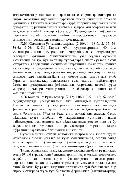 актиномицетлар целлюлозо парчаловчи бактериялар миқдори ва