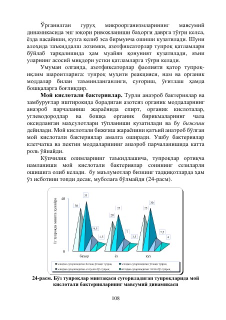 24-расм. Бўз тупроқлар минтақаси суғориладиган тупроқларида мой