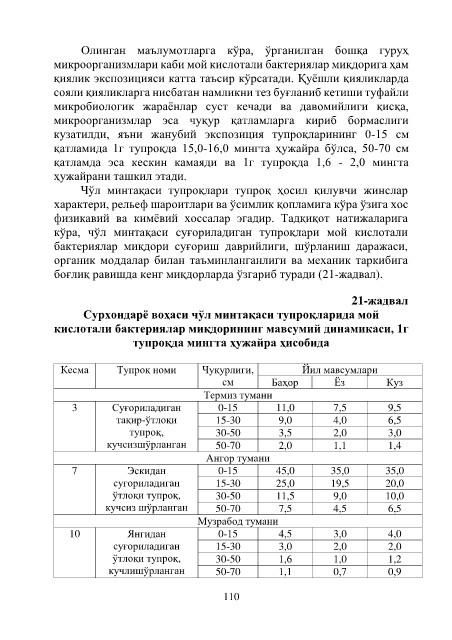 қатламда эса кескин камаяди ва 1г тупроқда 1,6 - 2,0 мингта