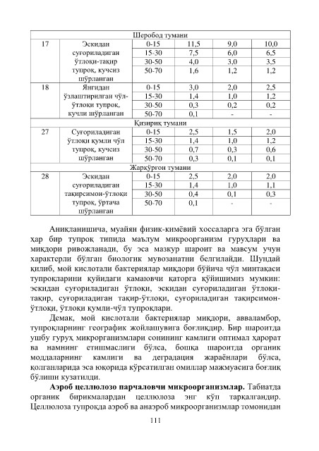ҳар бир тупроқ типида маълум микроорганизм гуруҳлари ва