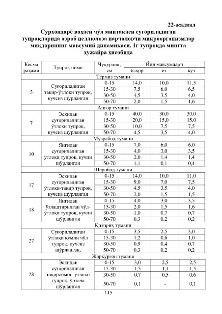 миқдорининг мавсумий динамикаси, 1г тупроқда мингта