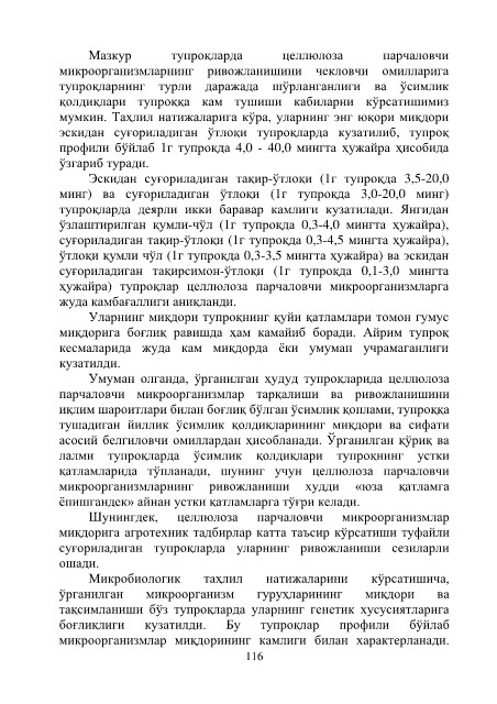 ҳужайра) тупроқлар целлюлоза парчаловчи микроорганизмларга