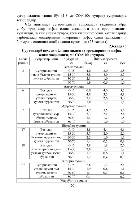 суғориладиган типик бўз (1,8 мг СО 2/100г тупроқ) тупроқларга
