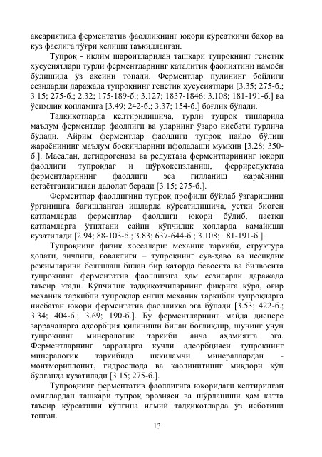 Тупроқнинг ферментатив фаоллигига юқоридаги келтирилган