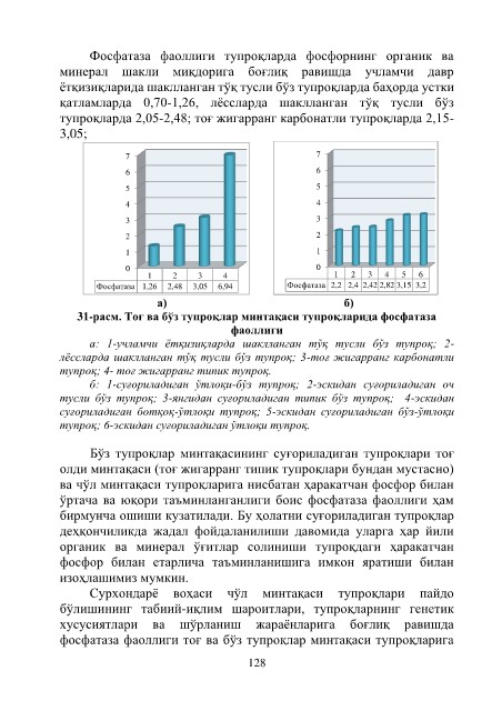 31-расм. Тоғ ва бўз тупроқлар минтақаси тупроқларида фосфатаза