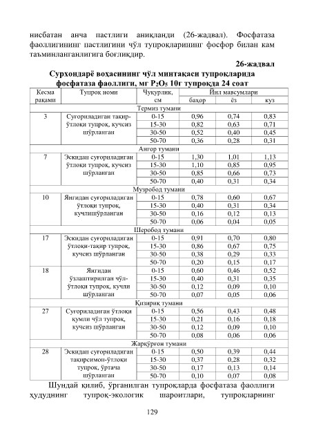Шундай қилиб, ўрганилган тупроқларда фосфатаза фаоллиги