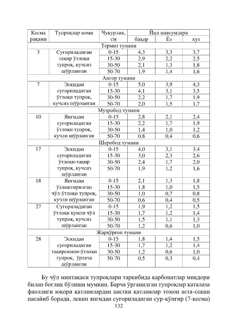 Бу чўл минтақаси тупроқлари таркибида карбонатлар миқдори
