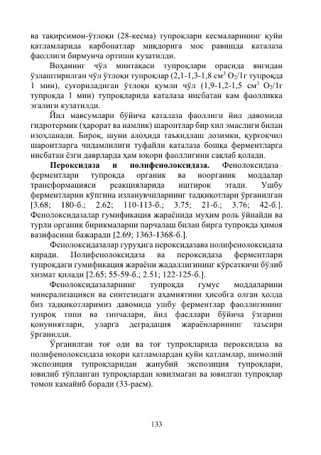 Ўрганилган тоғ оди ва тоғ тупроқларида пероксидаза ва