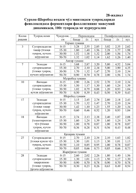 Кесма Тупроқ номи Чуқурлик, Пероксидаза Полифенолоксидаза