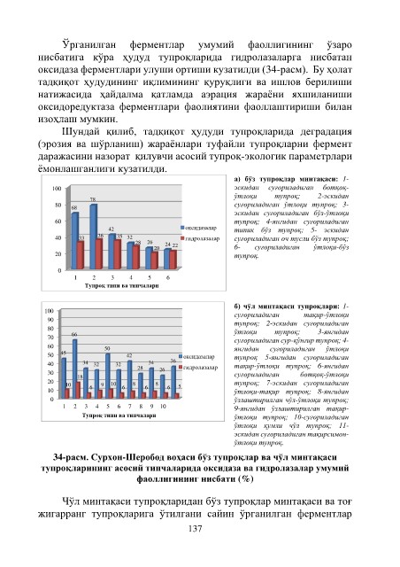 оксидаза ферментлари улуши ортиши кузатилди (34-расм). Бу ҳолат