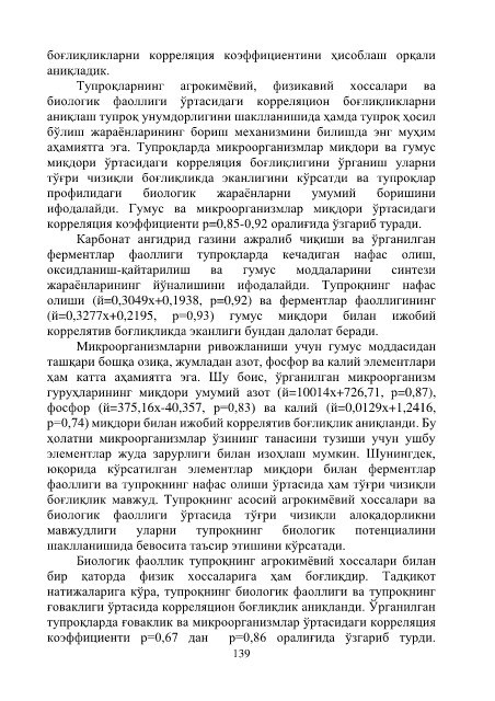 боғлиқлик мавжуд. Тупроқнинг асосий агрокимёвий хоссалари ва