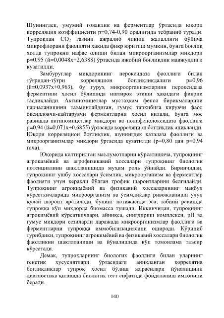 Демак, тупроқларнинг биологик фаоллиги билан уларнинг