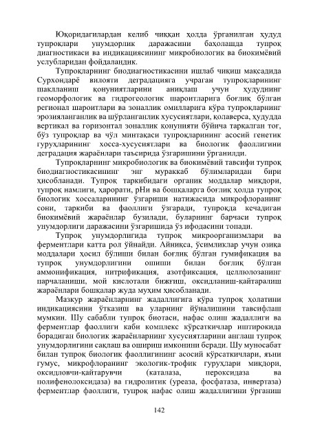 Тупроқларнинг микробиологик ва биокимёвий тавсифи тупроқ