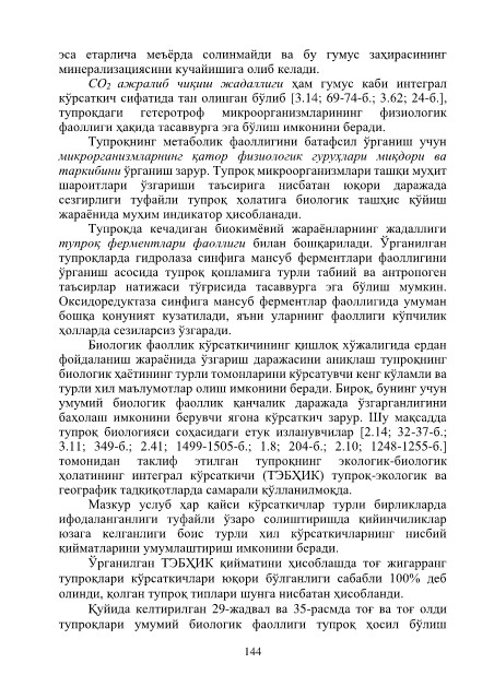 тупроқ ферментлари фаоллиги билан бошқарилади. Ўрганилган