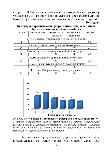 биологик фаолликка эга эканлиги аниқланди (30-жадвал, 36-расм).