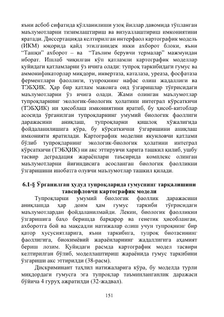келтирилган бўлиб, моделлаштириш жараёнида гумус таркибини