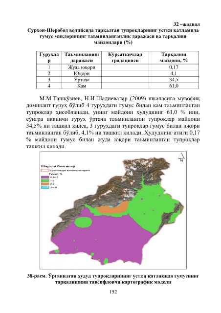 34,5% ни ташкил қилса, 3 гуруҳдаги тупроқлар гумус билан юқори