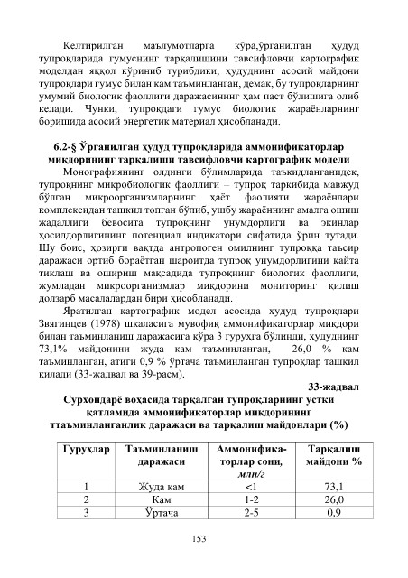 6.2-§ Ўрганилган ҳудуд тупроқларида аммонификаторлар