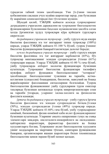 деградацияга учраганлик даражасини ва тупроқнинг биогеоценотик