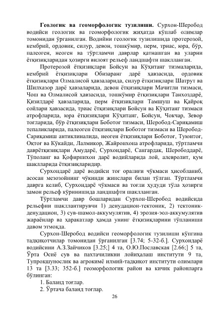 тадқиқотчилар томонидан ўрганилган [3.74; 5-32-б.]. Сурхондарё