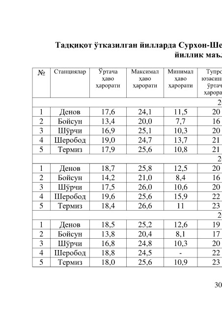 № Станциялар Ўртача Максимал Минимал Тупроқ Тупроқ Тупроқ Тупроқнинг Тупроқнинг Ўртача