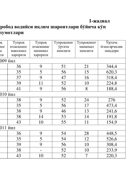 Тадқиқот ўтказилган йилларда Сурхон-Шеробод водийси иқлим шароитлари бўйича кўп