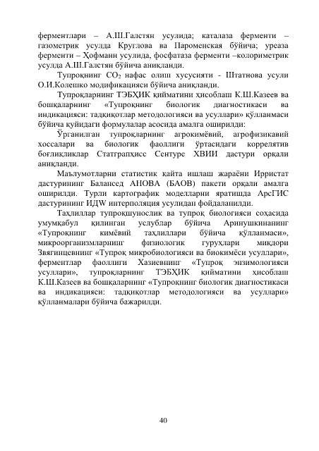 К.Ш.Казеев ва бошқаларнинг «Тупроқнинг биологик диагностикаси