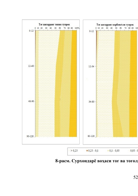 8-расм. Сурхондарё воҳаси тоғ ва тоғолди тупроқларининг механик таркиби 52