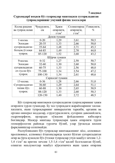 боғлиқдир. Мазкур минтақа тупроқлари ҳажм оғирлиги турли