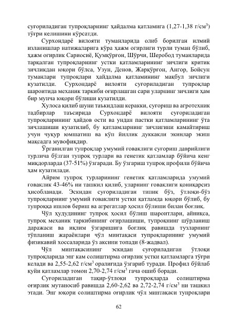 кузатилди. Сурхондарё вилояти суғориладиган тупроқлар
